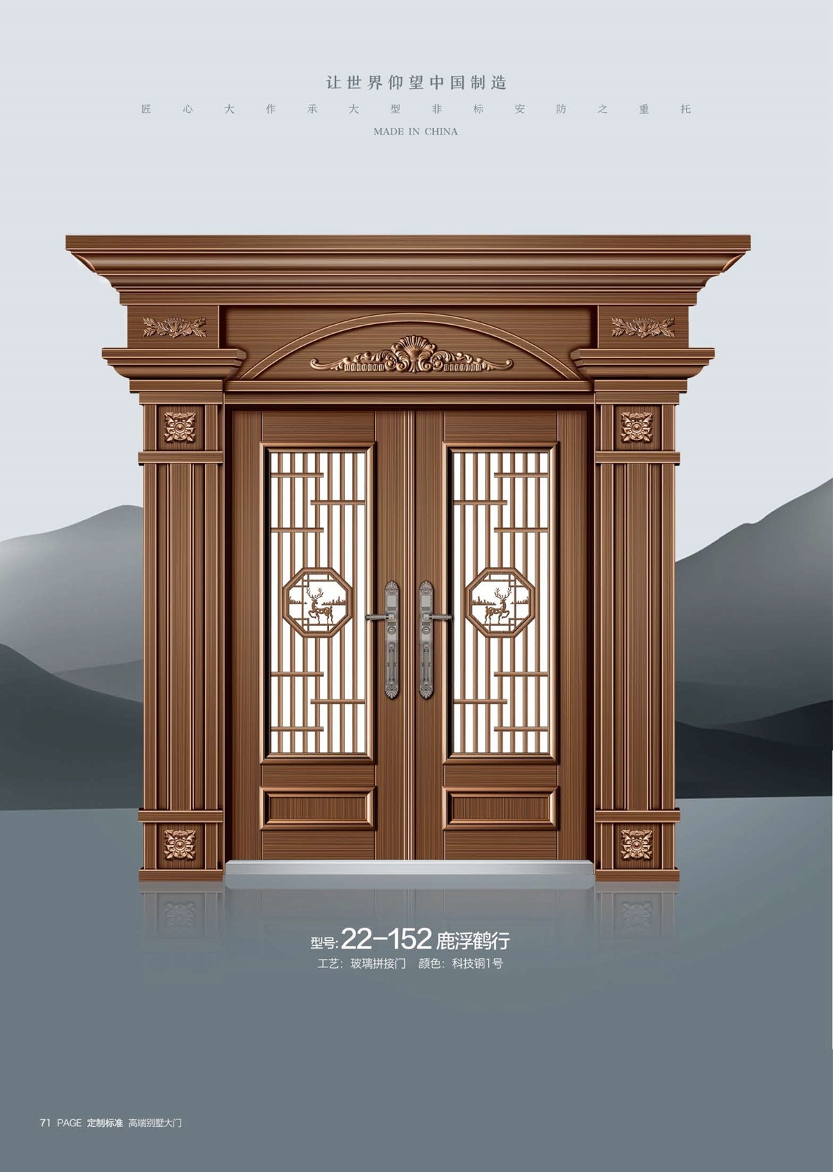 产品型号:22-152鹿浮鹤行-高端别墅大门定制